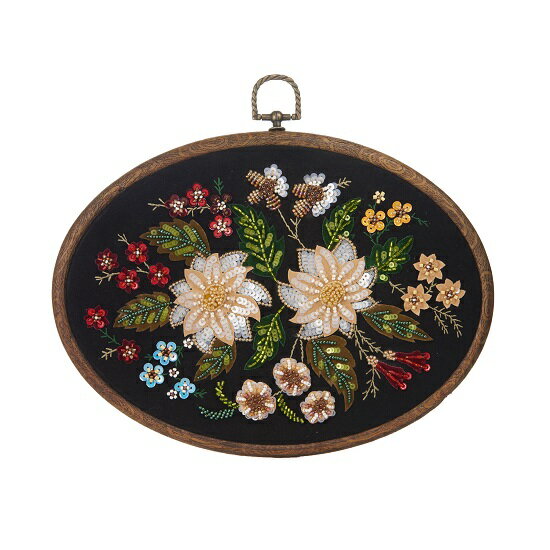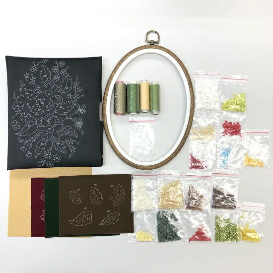 中級★★☆ 花や葉の形にカットした生地、ビーズ、スパンコール、刺繍糸など、様々な素材を組み合わせ、クラシックで豪華な刺繍にします。 フープフレームを刺繍枠として使用し、完成後そのままお部屋に飾ることができます。 <キット内容> ・図案プリント生地 ・フープフレーム ・テキスト ・材料(針、糸も含まれます) ・解説動画 ※視聴方法はキットに同封させていただきます。 <完成サイズ(約cm)> 高さ25×幅18.5 金具部分3 ※生産時期により、材料や生地の色、サイズ等が画像と多少異なる場合がございます。予めご了承ください。 ※商品写真は実物に近い色を心がけておりますが、お使いのデバイス、モニター設定、お部屋の照明等により実際の商品と色味が異なる場合がございます。 ※商品は配送の依頼を受けてから土、日、祝日除く4営業日以内に発送いたします。 ※他講座および販売促進活動に準ずる行為に、当該テキストを使用することはおやめください。 フラワーガーデンのフープアート キット