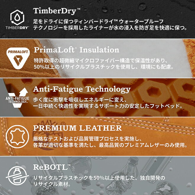 ※サイズガイドはこちらからご確認ください メーカー希望小売価格はメーカーカタログに基づいて掲載していますCOLOR ブラック DETAIL ※マウスをのせると画像が拡大します※画像の色は実物と異なって見える場合があります 【公式】ティンバーランド Timberland_メンズ ウォータープルーフ フィールド ブーツ - ブラック 素材 フルグレインレザー 原産国 バングラディッシュ/カンボジア 商品説明 根強い人気を誇るウィートカラーのフィールドブーツ。ウォータープルーフレザーと防水メンブレンであらゆる天候に対応可能。高いトラクションソールや、疲れにくいアンチ・ファティーグアウトドアやレジャーシーンで活躍する一足です。 商品詳細 ・ウォータープルーフ プレミアム ティンバーランド? レザーとメッシュを使用したアッパー・ティンバーランドはレザーワーキンググループのメンバーです・Dリングのアイレット・足首に優しくフィットするパッド入りの履き口・保温性の高い200gプリマロフト? インシュレーション・50%以上のリサイクルプラスチックを使用した環境に優しいリボトル?素材のライニング・クッション性が高く疲れにくい取り外し可能なアンチファティーグのフットベッド・土踏まずを支えるファイバーグラスシャンク入り・50%のリサイクルプラスチックを使用したティンバードライ? ウォータープルーフテクノロジーのメンブレン・耐久性、トラクションに優れたラバーラグアウトソール・ワイズ:M(ミディアム) ※お客様のご都合による返品・交換はお受けできません。ご購入前に必ず商品詳細をご確認下さい。 ※ブラウザやお使いのモニター環境により、掲載画像と実際の商品の色や質感が若干異なる場合があります。予めご了承ください。 ※複数の工場で作成しているため原産国が異なる可能性があります。原産国はお選びいただけませんので予めご了承ください。