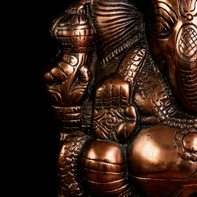 ■ガネーシャ【31cm】の詳細 素材 ガンメタル 備考 素材の特性上、緑青が生じている場合がございます。 商品サイズ約31cm x 21cm x 11.50cm 約1500gインド商品について弊社では「現地の雰囲気をそのまま伝える」というコンセプトのもと、現地で売られている商品を日本向けにアレンジせず、そのまま輸入・販売しております。日本人の視点で商品を検品しておりますが、インドならではの風合いや作りのものもございます。全く文化の異なる異国から来た商品とご理解ください。あす楽についてクーポンプレゼントキャンペーンについてこちらの商品は「商品レビューで1000円OFFクーポン プレゼント」キャンペーンの対象商品です。以下の画像をクリックで、キャンペーンの詳細ページをチェック!正面からの写真です顔の拡大写真です細部の拡大写真です細部の拡大写真です台座部分にはガネーシャの乗り物であるねずみがいます。斜めから見てみました。斜めから見てみました。背面からの様子です。 ■豊かな存在感 幸運と金運を呼ぶガネーシャの像。ガネーシャはあらゆる困難を取り去り人々に成功をもたらすとされ、インドでも最も愛されている神の一柱です。 ■重厚な雰囲気で持ち運び簡単 黒光りする重厚な雰囲気と、持ち運びしやすい重さが特徴の金属、ガンメタル製。重量とコスト削減のため、見えない部分は綺麗に削られています。その分、お値段も安く、お買い特なんですね。そんな裏面もインドらしい無骨な感じで味わい深いです。 もちろん見える部分はしっかりと綺麗に作りこまれているので、部屋に飾ると存在感抜群!!レストランや雑貨屋のディスプレイとしてもお勧めです。満足いく大きさ、確かな細工で、きっとご満足いただける逸品です。