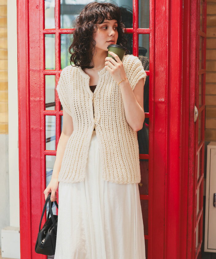 先着100名様【店内全品50%OFFクーポン】12/4 20時~■ハンドライクローゲージニットベスト トップス レディース ニット ベスト ノースリーブ Vネック ざっくり編み オーバーサイズ シンプル カジュアル