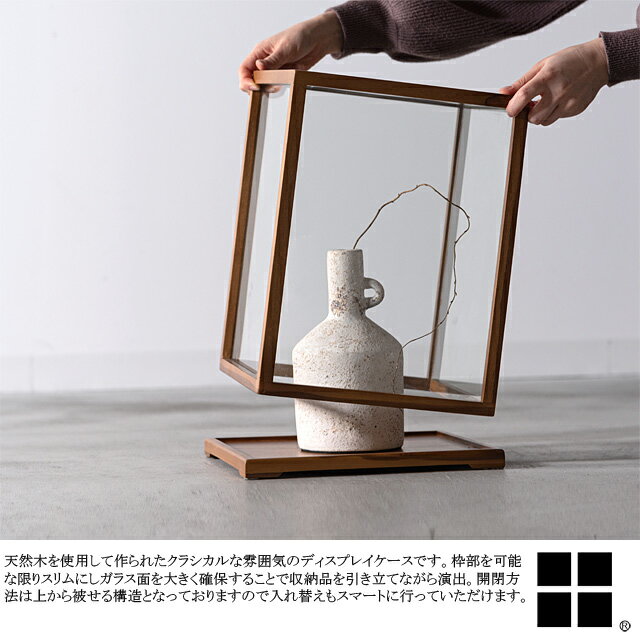◆クラシックショーケース Classic show case ■商品説明 天然木を使用して作られたクラシカルな雰囲気のディスプレイケースです。 枠部を可能な限りスリムにしガラス面を大きく確保することで収納品を引き立てながら演出。 開閉方法は上から被せる構造となっておりますので入れ替えもスマートに行っていただけます。 枠部及び、台座部の材料には天然木チーク材を贅沢に使用。 天然木ならではの風合いを感じていただける仕様となっております。 またガラス面には3mm強化ガラスを使用しております。 本商品は天然素材を使用し制作されております。 そのため不均一感やラフな印象を与える場合が御座いますが 樹脂製品・化学製品では表現しきれない風合い・コンセプトであります事を 予めご理解頂きますよう宜しくお願い致します。 商品重量約3.5kg ■仕様 SIZE 約W280mm D280mm H360mm COLOR ブラウン系 材質 天然木チーク材 3mm厚強化ガラス 完成品 ■備考 ※商品画像に関しましては十分配慮しておりますが、お使いのモニター及び パソコンの環境により色等厳密に表現出来ません事を あらかじめご了承下さい。 ※画像内の商品以外の演出品につきましては、 演出目的での使用の為、商品代金には含まれません。