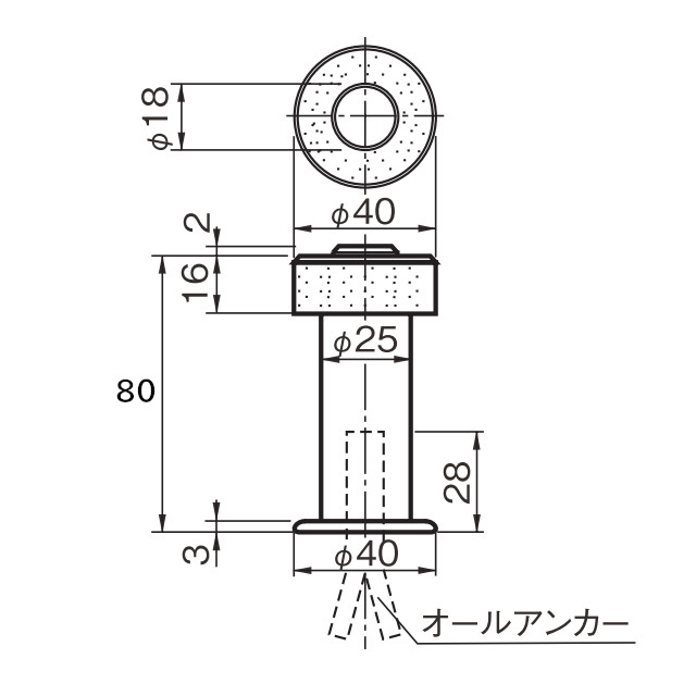 商品詳細 メーカー 杉田エース 商品名 ハイロン床付け戸当り アンカー用 商品番号 162-834 サイズ 80H 重量 200g 付属品 オールアンカー C-1060:1本 材質 SUS・スチール・ゴム 仕上げ ヘアーライン・電気亜鉛メッキ 特徴 アンカー用戸当りです。間仕切りなど、扉のクッションにご利用頂けます。