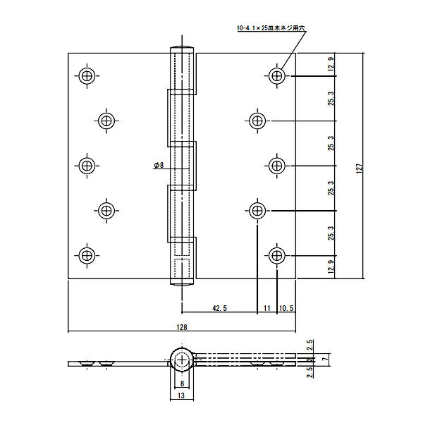 ★ポイン5倍※16日まで★【送料無料】PLUS Check STR-5 1箱(2枚入) /HL ナイロンリング入り 義星丁番 ヘアライン 厚み2.5mm×高さ127mm×幅127mm ステンレス(SUS304) 取付ビス付属 ヒンジ 蝶番 ※取寄せ品※