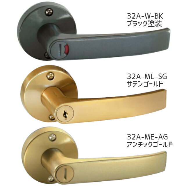 ★ポイントバック対象※要エントリー★【送料無料】日中製作所 32A-ML /鍵付間仕切錠(ブラック・Aゴールド・ニッケル・ブロンズ) レバーハンドル 子鍵3本付 バックセット50/60mm 扉厚30mm-40mm ドアノブ 取替 レバー ハンドル チューブラ錠 HINAKA ヒナカ ※取寄せ※