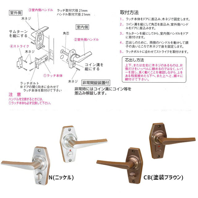★ポイントバック対象※要エントリー★【送料無料】川口技研 ホームレバー 表示錠 HL-4-L / 左吊元用 バックセット35・50・60mm 扉厚29mm〜45mm N(ニッケル)・CB(塗装ブラウン) GIKEN チューブラ錠 レバーハンドル ドア レバー 交換 トイレ錠