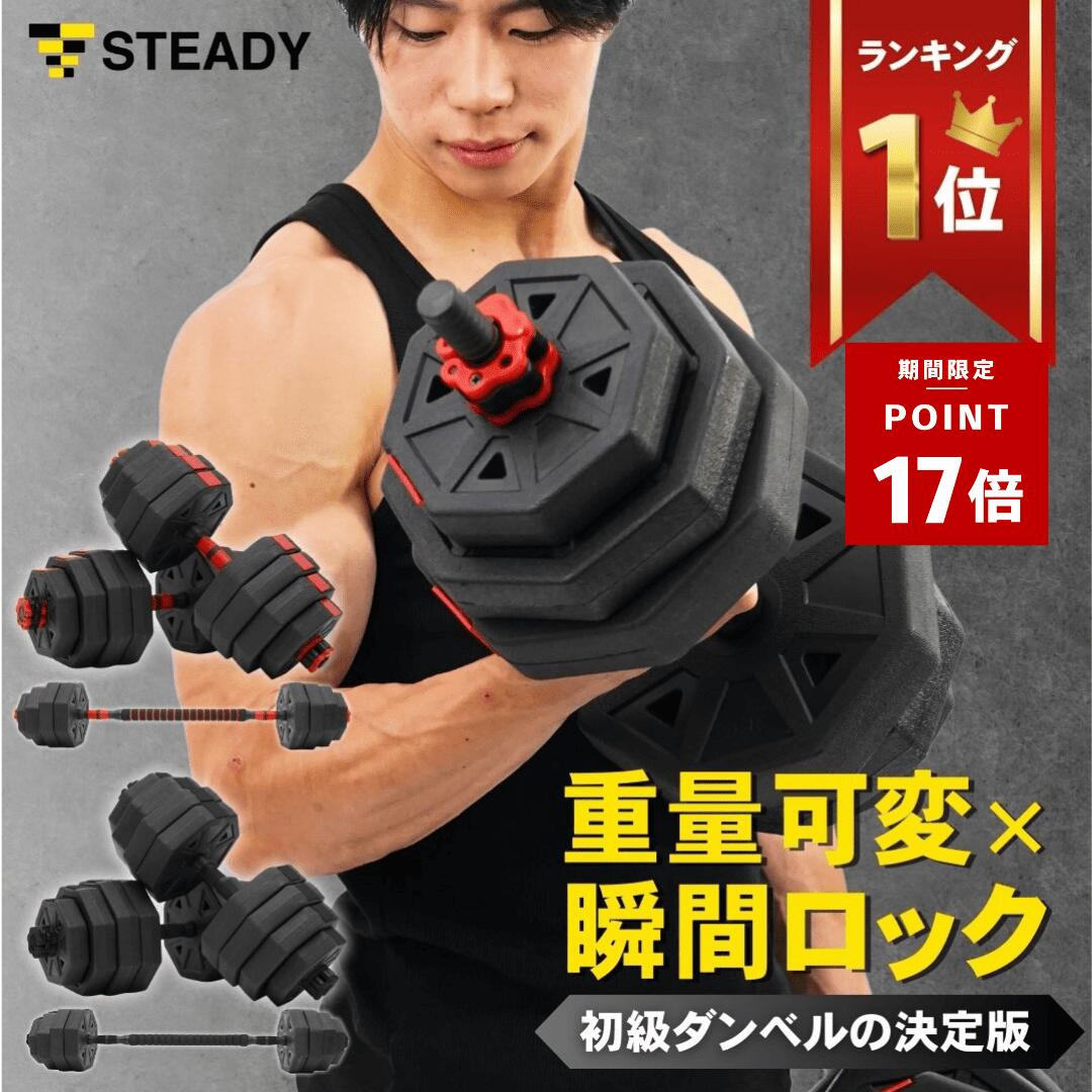 \最大P17倍&500%バック ※1/3まで・要エントリー/STEADY ダンベル 可変式ダンベル 5kg 10kg 15kg 20kg 2個セット 20kg×2セット 15kg×2セット 10kg×2セット 5kg×2セット 筋トレ ダンベルセット 鉄アレイ ケトルベルアタッチメント 【1年保証】ST130 バーベル