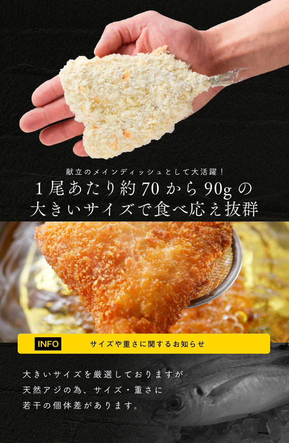 大きめサイズ 国産アジフライ (約70から90g×6尾 2パック) 長崎県産 鯵 切り身 冷凍 送料無料 ajf2403