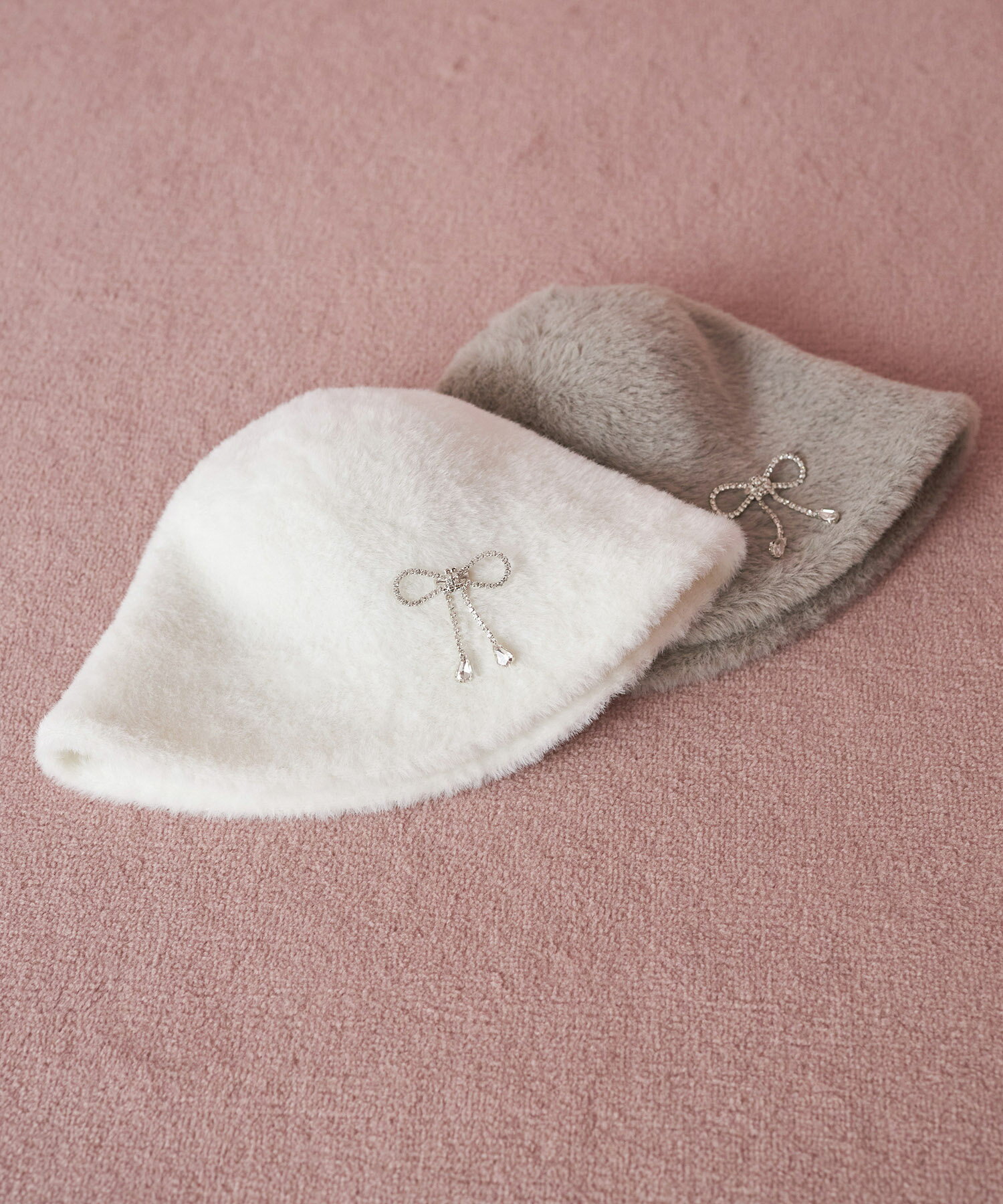 リボンブローチ付きシャギーハット【viere ヴィエール】tocco closet(トッコクローゼット) ※上西星来さんはオフホワイト着用 オフホワイト グレー 商品番号:186-201032