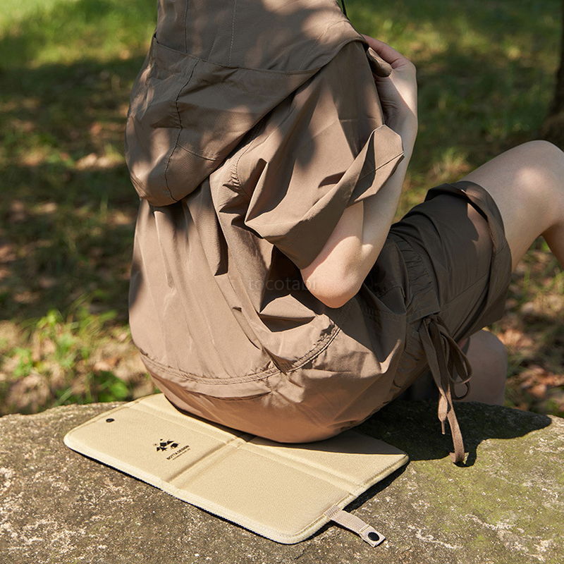 サイズ 26×35cm 厚み0.9cm 折りたたみ時18×4cm 厚み4cm 重さ 約75g(カラーやロットによって若干のばらつきがあります) 材質 表地:ポリエステル内部:ポリエチレン発泡材 ※使用上の注意 ■配送方法 クリックポスト(追跡あり/補償なし/日時指定不可) ※荷姿などにより変更となることがございます。また、複数個ご注文いただきました場合<クリックポスト(A4サイズ)2~3個口>もしくは<佐川宅配便>で発送します。発送方法の指定はできかねますので、あらかじめご了承ください。 クリックポストの場合、ポストに入らない場合は手渡し、もしくは不在票が入りますのでお手続きをお願いいたします。 ・入荷時期やロットにより色合いが異なる場合がございます。 ・鋭利なものでひっかけると糸が飛び出しやすくなっておりますのでご注意ください。 ・汚れた場合は手洗いが可能です。 ・完全防水ではありません。悪天候時や雨の直後などの濡れた地面の上では使用しないでください。・ご使用いただくうちに防水加工が弱まった際は、市販の防水スプレーなどをかけてください。手のひらサイズでどこでも一緒に コンパクトサイズ 洗えるポータブルクッション 4つ折りタイプ 当店で人気のポータブルクッションに4つ折りタイプが新登場!さらにコンパクトに折りたためるので、カバンやパーカーのポケットにもすっぽり入ります。 よくある柄入りではなくシンプルで大人かわいいサファリカラー。 野外で映えるカーキ、アーミーグリーン、ブラック、レッドの4色! どのカラーも少しだけ渋めの色合いなので、落ち着いた雰囲気。 ビニールではなくオックスフォード風の生地で高級感もあります。 同色系で揃えても、4色並べても統一感があります。 大きすぎず、小さすぎずの絶妙なコンパクトさ。 体格のいい方でもしっかりお尻が収まるサイズが確保されています。 カバンや車のダッシュボードやトランクに入れておいて、使いたいときにサッと広げて使うことができます。 手のひらサイズなので、カバンに入れておいて使いたいときにサッと取り出せます。 撥水加工がされた生地なので、芝生や地面に直接敷いても大丈夫。安心して野外で座れます。 裏側は通気性に優れたメッシュ生地。 スナップボタン開閉式ですっきり持ち運べます。 おしゃれなロゴ入り 撥水加工で安心。 艶消しのオックスフォード生地で高品質な仕上がり。 高反発の固めウレタンが入っているので、薄いながらもしっかりと体重を受け止めてくれます。 柔らかいクッションは一見座り心地が良いようですが、長時間座るとお尻の骨が当たって痛くなってしまうこともあるので、高反発クッションがおすすめです。