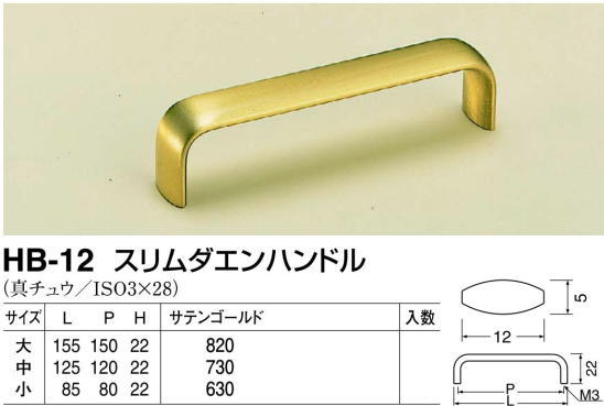 シロクマ 白熊印・HB-12 真鍮スリムダエンハンドル 大(全長=155mm ビスピッチ=150mm)