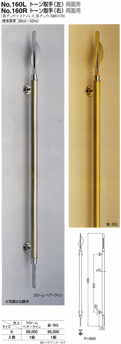 シロクマ 白熊印・ドアー取手 No.160L トーン取手(左) 仕上:金・SG