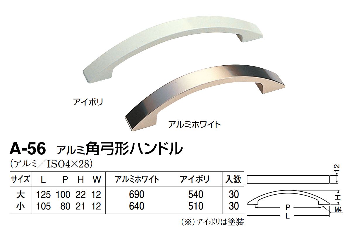 シロクマ 白熊印・A-56 アルミ 角弓形ハンドル 小 仕上:アルミホワイト(全長=105mm ビスピッチ=80mm)