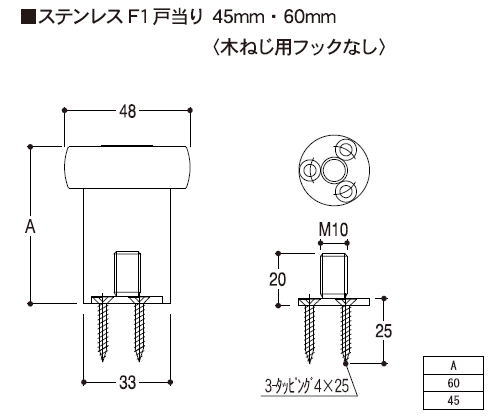 エイト ステンレスF1戸当り(高さ45mm フック無 木ネジ) S45-OW 鏡面 (戸当り 戸当 ドアストッパー)