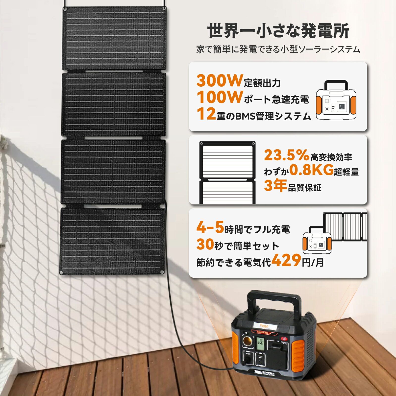 【期間限定★P15倍還元で27,750円】TogoPower 300W ポータブル電源 ソーラーパネル セットリン酸鉄 蓄電池 177wh/55200mAh 軽量 ポータブルバッテリー 純正弦波 小型 40W ソーラーチャージャー 太陽光発電 折り畳み 高転換率 防災 津波 地震 停電 敬老の日