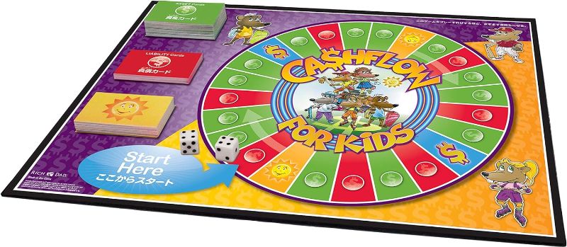 ■子どもに、豊かな人生を歩めるようなお金の教育を 『キャッシュフロー・フォー・キッズ』は、「お金を自分のために働かせる方法」を、子どもが自分でプレーしながら楽しく学べるボードゲームです。 「経済的に自由で豊かな人生」を送るためのツールとしての「お金の賢い使い方」とは何か? このゲームを親子でプレーすることで、豊かな人生を生きるために必要不可欠な「お金についての基礎知識」をお子様に与えることができるでしょう。 ■このような方にこのゲームをお勧めします! ・楽しく遊びながらファイナンシャルIQを伸ばしたいというお子様 ・家族で楽しい時間をすごしながら、生きていくのに必要不可欠な「キャッシュフローの管理スキル」をお子様に教えたいと思っている方 ●対象年齢:6歳以上 ●同時プレー:2〜6人 ●セット内容:ゲームボード1枚、ゲームカード158枚、ネズミのコマ6個、サイコロ2個、ルーレット盤1個、トークン156枚、紙幣120枚、財務諸表6枚、ルール説明カード1枚 ●材質表示 ・コマ(ネズミ):汎用ポリスチレン ・サイコロ:プラスティック ・原産国:中国(MADE IN CHINA)