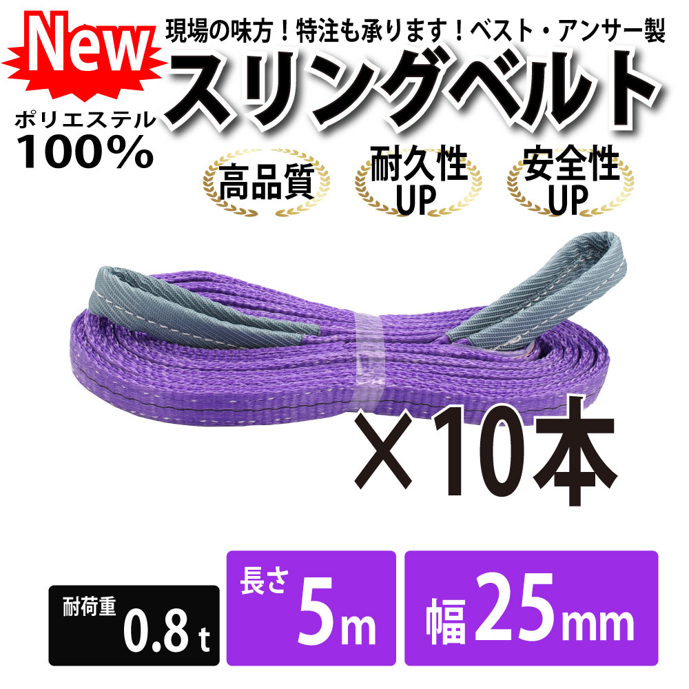 スリングベルト 25mm 5m 10本セット ナイロン 長さ5m 幅25mm 使用荷重800kg スリング ベルト ベルトスリング 玉掛 玉掛け 玉掛けスリング 吊上げ ナイロンスリング ベルトスリング 繊維ベルト 吊ベルト 運搬ベルト 運搬スリング 吊具