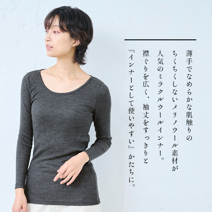【2点以上購入で500円OFFクーポン対象】[ メリノウール インナー レディース 下着 アンダーウェア ] チクチクしない ミラクル ウール100% 九分袖 インナー / 日本製 40代 50代 60代 30代 ウォッシャブル 暖かい リブ あったか 長袖 無地 冬 秋 洗える カットソー 肌着 防寒