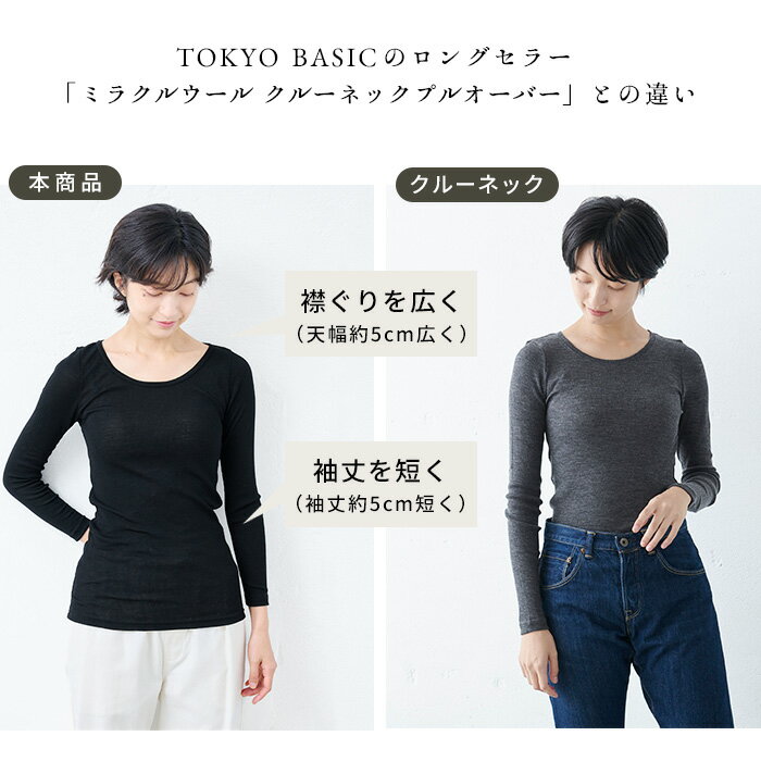 メリノウール100%でつくった九分袖インナーです。繊維が細くやわらかなメリノウールは、チクチクしにくく、素肌に気持ちよくなじみます。天然素材ならではの保温性と吸湿性があり、暖かいのに蒸れにくく、冬の日常使いにぴったりです。軽く伸びのある生地は重ね着してもごわつかず、アウターにひびきにくいのが特徴です。九分袖が腕まわりまで自然に暖めてくれるため、通勤や外出時にも快適に過ごせます。毎日無理なく着られる、シンプルで使いやすいメリノウールインナーです。 メリノウール インナー レディース 下着 アンダーウェア チクチクしない ミラクルウール100% 九分袖 インナー 日本製 40代 50代 60代 30代 ウォッシャブルウール レディース 暖かい リブ あったか 長袖 無地 春 冬 秋 洗えるウール カットソー 肌着 防寒 長袖 オフホワイト オフ白 チャコール グレー ブラック 黒TOKYO BASIC ウール100% ミラクルウール100% 九分袖インナー SIZEM・L COLORオフホワイト・チャコール・ブラック カラー オフホワイト・チャコール・ブラック サイズ ※素材の特性上、極細のウールをゆっくりと編んだ生地で非常に柔らかく、伸びやすいのですが、その反面縫製難易度が高く、サイズの安定がしずらい点がございます。商品によって多少の差異がございますがご了承の上、お買い求めください。 ※横方向にかなり伸びる生地の為、バスト寸法はヌード寸表記にしております。Mサイズの実寸で約68~100cm程度の伸縮可能です。 サイズ計測方法はコチラ>>> 原産国 日本製 素材 毛100% 洗濯表記 手洗い ※洗濯機の手洗いコースの場合は必ずネットに入れてください。 裏地 なし ポケット なし モデル着用サイズ Mサイズ メール便 ○ 特徴 毎日着たい魔法の一枚。薄手でなめらかな肌触りのちくちくしないメリノウール素材が人気のミラクルウールインナー。襟ぐりを広く、袖丈をすっきりと『インナーとして使いやすい』かたちに。素肌を包むのはいつも同じと決まっている。素肌にやさしくて、暖かで。見えても気にならない上質感。ずっと、ずっと、着ていたい。 ※画面上の商品の色は、お使いのパソコンモニターの設定や照明により、実物と異なる場合があります。 この商品はゆうパケット対応可能です。 ゆうパケットは全国一律¥200です。 ・ 購入時の配送方法選択は「メール便」をお選びください。 ・ 代金引換・配達日時をご指定頂くことはできません。 ・ 紛失・不達時の保証、破損の際の補償が一切ございません。 ・ 表札には名前が必須となります。 ※ ゆうパケットは配達員による手渡しでなく、郵便受け等への投函でのお届けとなります。