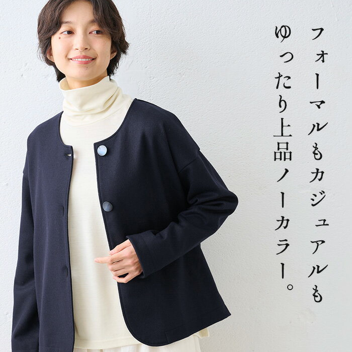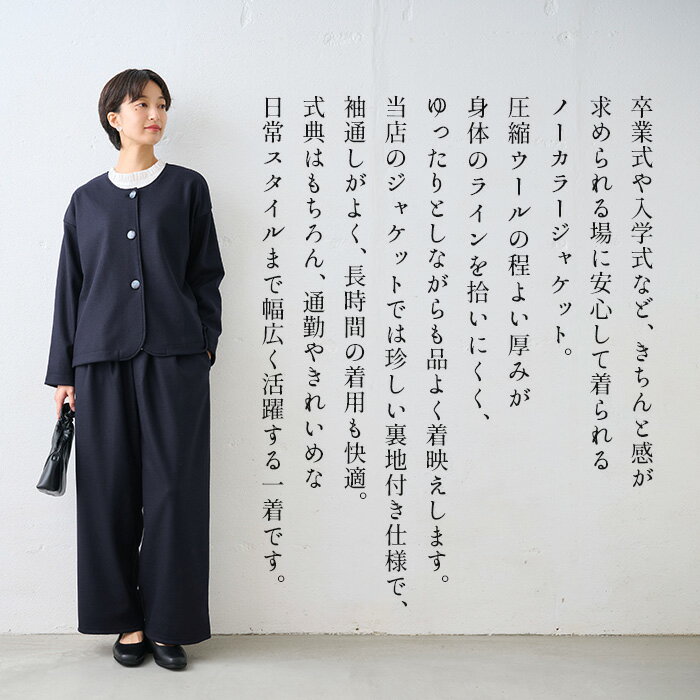 [ フォーマル ジャケット レディース 入学式 卒業式 ウール ] 圧縮ウール100% 裏地付き ノーカラー ジャケット / 日本製 40代 50代 母 レディース ママ セレモニー 母親 服装 秋冬 おしゃれ きれいめ 秋 冬 春 ゆったり 体型カバー 暖かい