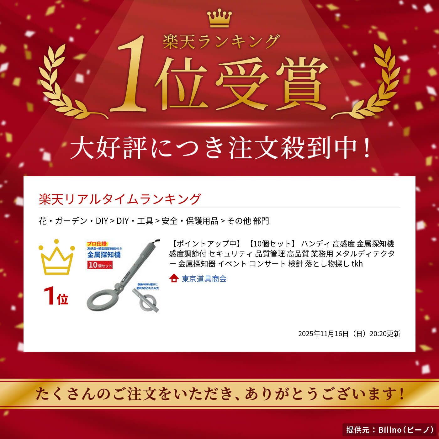 【20日、21日はポイント5倍でおとく!】 【10個セット】 ハンディ 高感度 金属探知機 感度調節付 セキュリティ 品質管理 高品質 業務用 メタルディテクター 金属探知器 イベント コンサート 検針 落とし物探し tkh