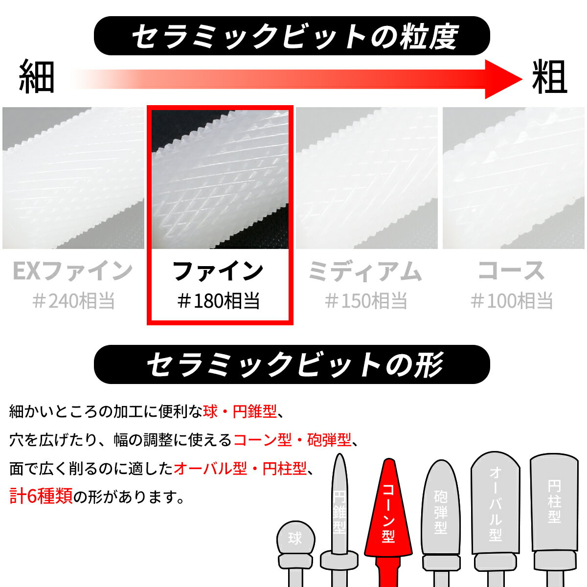 POLARIS セラミックビット リューター ビット ジルコニアセラミック コーン型 (ファイン) 軸径 2.35 mm リューター ネイルマシーン ミニルーター パーツ ビット アートルーター 対応 ネイル レジン プラモデル 削り 加工