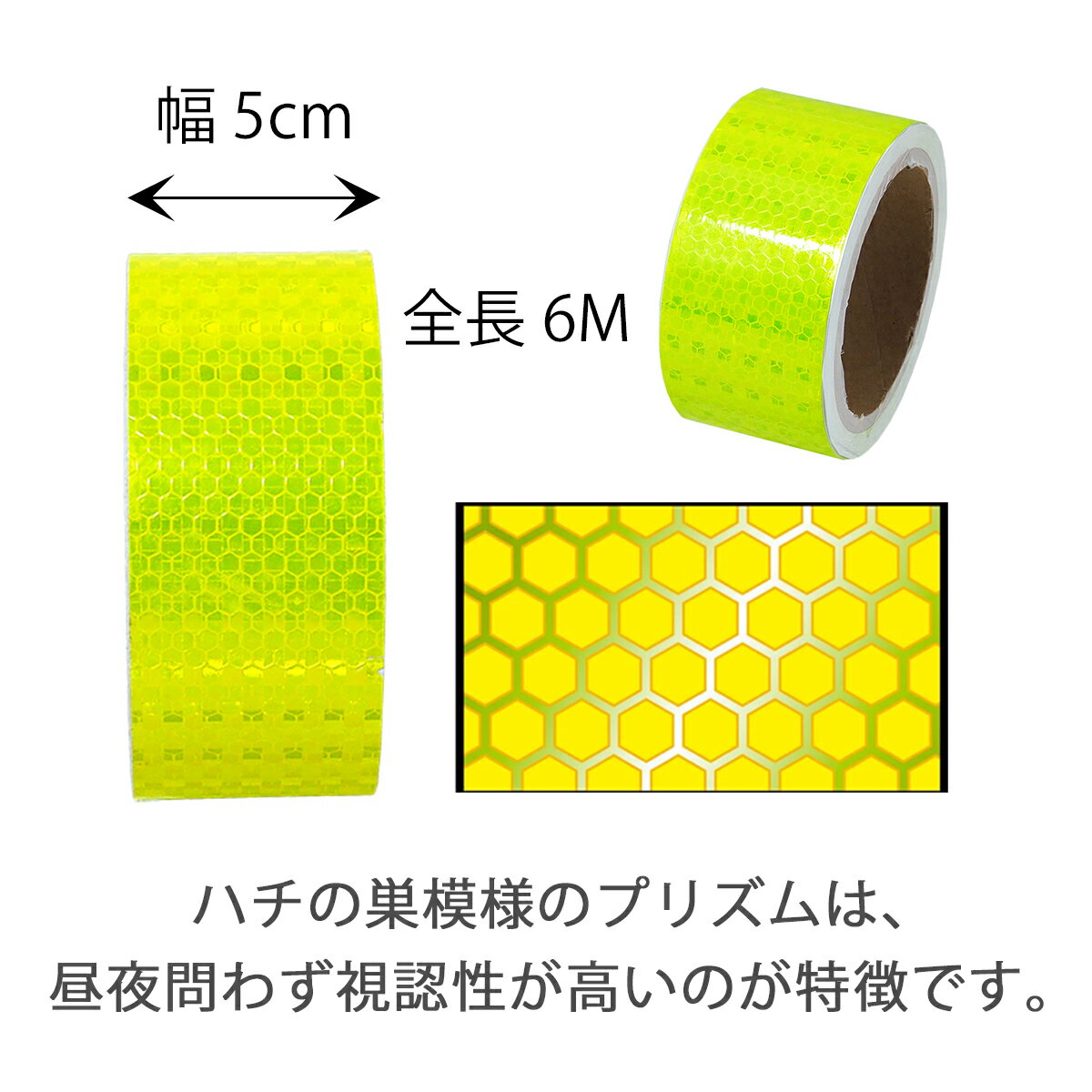 【商品ポイント5倍!】 TIGER 高輝度 反射テープ 幅5cmx6m 耐水 安全警告テープ 反射材 夜間 事故防止 駐車場 工場 現場 車 バイク 自転車 段差 シャッター ポール コーン ヘルメット 標識 追突防止 SS-03 黄色 SS-04 白色 高輝度反射テープ cmp
