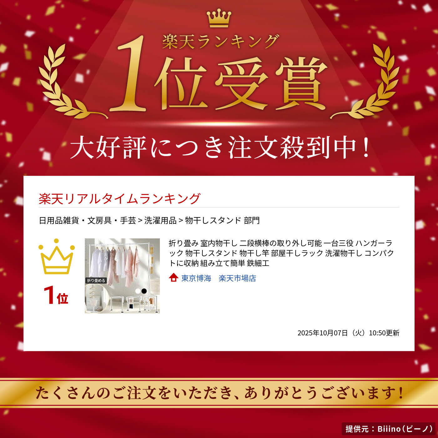 【今なら最低7,990円!1000円OFFクーポン配布中~】折り畳み 室内物干し 二段横棒の取り外し可能 一台三役 ハンガーラック 物干しスタンド 物干し竿 部屋干しラック 洗濯物干し コンパクトに収納 組み立て簡単 鉄細工