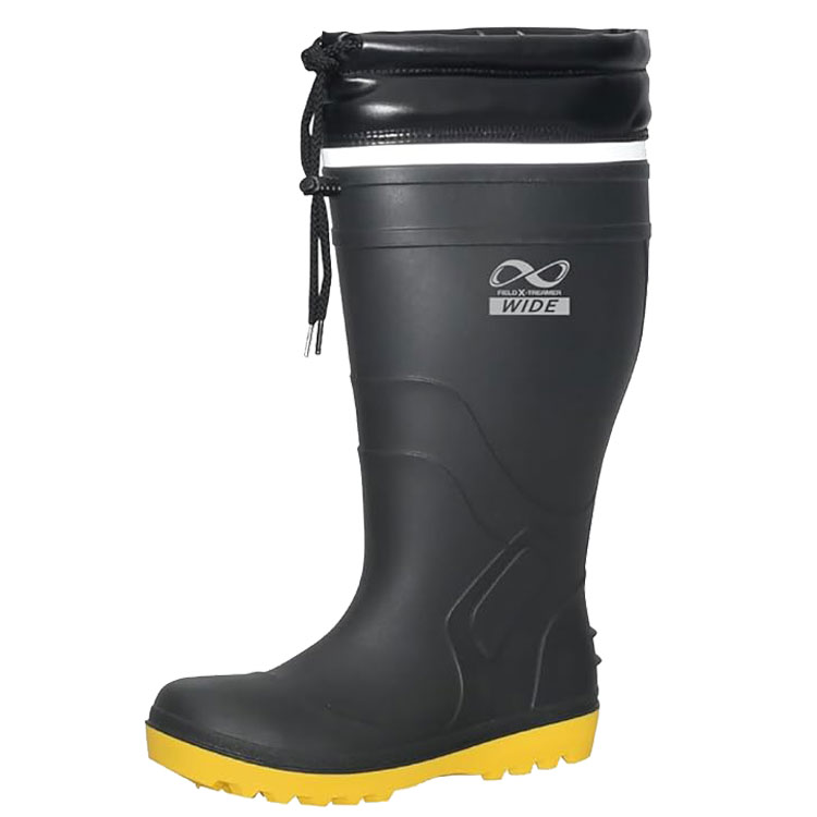 商品説明 サイズ L(26.0-26.5cm) LL(27.0-27.5cm) 3L(28.0-28.5cm) 4L(29.0-29.5cm) 5L(30.0-30.5cm) 6L(31.0-31.5cm) カラー 11.ブラック 素材・混率 PVC 商品特長 ●鋼鉄製先芯 ●耐油 ●踏み抜き防止板 ●防滑 ●耐薬品 ●静電防止機能 商品説明 従来品よりも履き口が約7cmも広い、約54cmの履き口周り(サイズ4Lの場合) 先芯・踏み抜き防止板を内蔵した長靴。 履き口は水しぶき、砂塵等の侵入を防ぐフード付。 再帰反射材使用で夜間での視認性UP。 鋼鉄製先芯・耐油・踏み抜き・防滑・耐薬品・静電防止機能を持った安心の6つの機能付き。