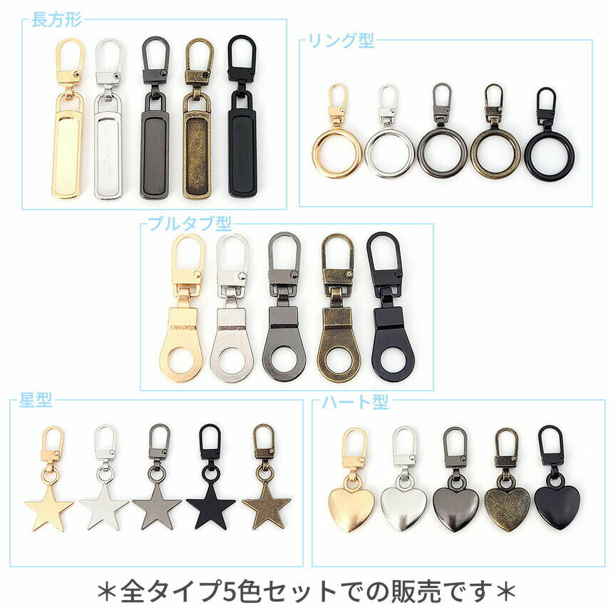 ★大感謝祭!ポイント5倍★全5種類 各5色 ファスナー 引き手 引手 ジッパー 持ち手 チャーム 長方形 リング プルタブ 星 ハート つまみ 修理 交換 補修 チャック パーツ 取っ手 金具 バッグ 服 ハンドメイド 手芸 材料 ゴール