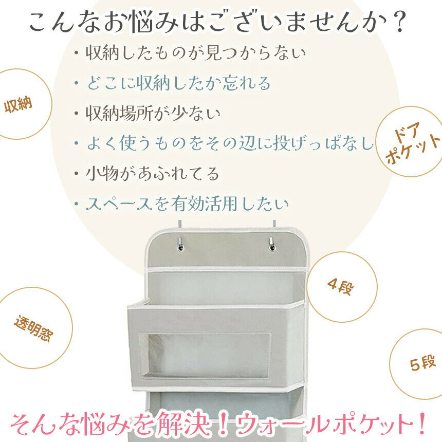 【収納の味方!ウォールポケット】収納時、納めこんで探しているものが見当たらない!お部屋がものであふれている。よく使うものは見えるところに収納したい。そんな不安を解決してくれるウォールポケットです。主にドアポケットとして付属のフックを使用してドアにかけます。本体上部に2つ穴がありますので、市販のフック等を利用して壁掛けなど、様々なところにかけるのも可能です。【見える窓のデザイン】 収納ポケットは、透明もしくはメッシュの窓が付いているため、収納されているおもちゃやアクセサリーをすべてすぐに見つけることができ、保管と取り出しが簡単になります。【底面の型紙、折り畳み可能】各ポケットの底面に取り付ける板が付属しておりますので、形を安定させて利用することができます。吊り下げ式の収納ポケットなので、部屋の空間を活用でます。バッグや小物の収納に便利です。使わない時はコンパクトに折り畳めるので、スペースをとりません。【多機能収納】保育園、バスルーム、保管室、プレイルーム、アパート、寮、RV、またはスペースがあまりなくて収納があまりできない場所などに適しています。 ぬいぐるみ、おむつ、ベビー服、タオル、ドライヤー、化粧品、おもちゃ、雑誌、文具、手芸用品などの小物もすっきり収納できます。【サイズ・カラー】Aタイプ・縦119x横31.5x奥行12cmBタイプ・ 縦125x横33x奥行12.5cmカラー・グレー1セットの内容・本体x1・ドアかけフックx2・ポケットの底面板(Aタイプ4つ、Bタイプ5つ)※日本語取扱説明書、撮影用小物類などは付属しておりません。※簡易包装でのお届けとなります。※モニターにより色合いが若干違いが生じる場合がございます。※デザインは入荷時期により若干変化する場合がございます※海外製造品のため、多少の匂い軽微な傷や汚れ、個体差等ある場合がございます。※商品の使用により生じた如何なる損害・被害も弊社では一切の責任を負いかねますので予めご了承ください。※発送方法について:お届け先、個数によって配送情報に記載の配送業者とは異なる場合がございます。日本郵便、または佐川急便(配送方法はご指定頂けません)でお届けいたします。