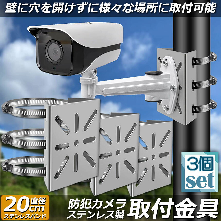 防犯カメラ ポール 取付金具 3個セット カメラ ブラケット スタンド ステンレス製 ハウジング 穴開け ビス止め 不要 監視カメラ ダミー ハウジング ブラケット円柱 角柱 屋外 設置 すぐ使える