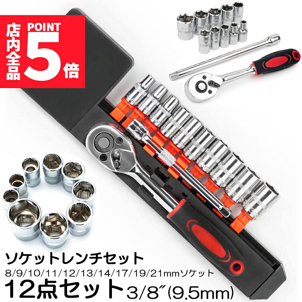 ★期間限定ポイント5倍★ソケットレンチセット ラチェットハンドル 六角ソケット 差込角9.5mm 3/8インチ ソケットセット レンチ ドライバー 工具セット 作業セット 12PCS ラチェット式 車バイクにコンパクトに収納 急なアクシデン
