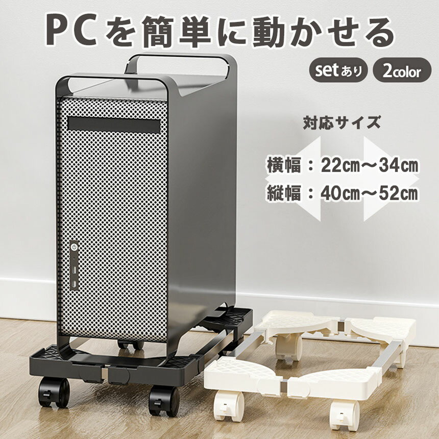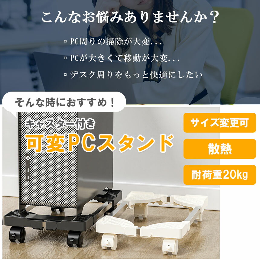 可変CPUスタンド PCスタンド CPUスタンド PC デスクトップ 可変式 フルタワー ミドルタワー ミニタワー デスク 収納 ゲーム キャスター付き pc 置き台 PCキャスター 台車 サイズ調整 ストッパー 移動 熱対策 掃除 オフィス ワーク 安定 簡単組み立て ブラック ホワイト