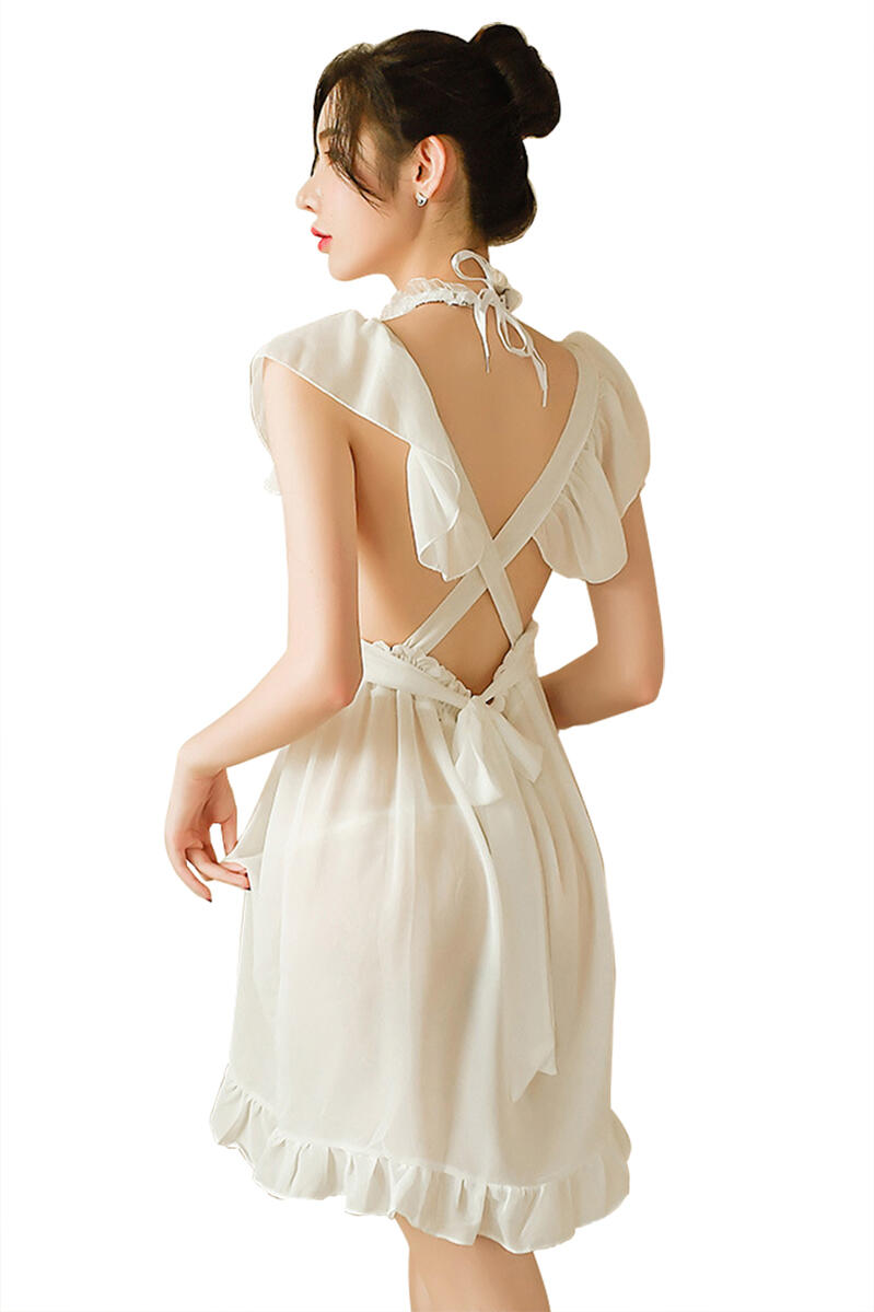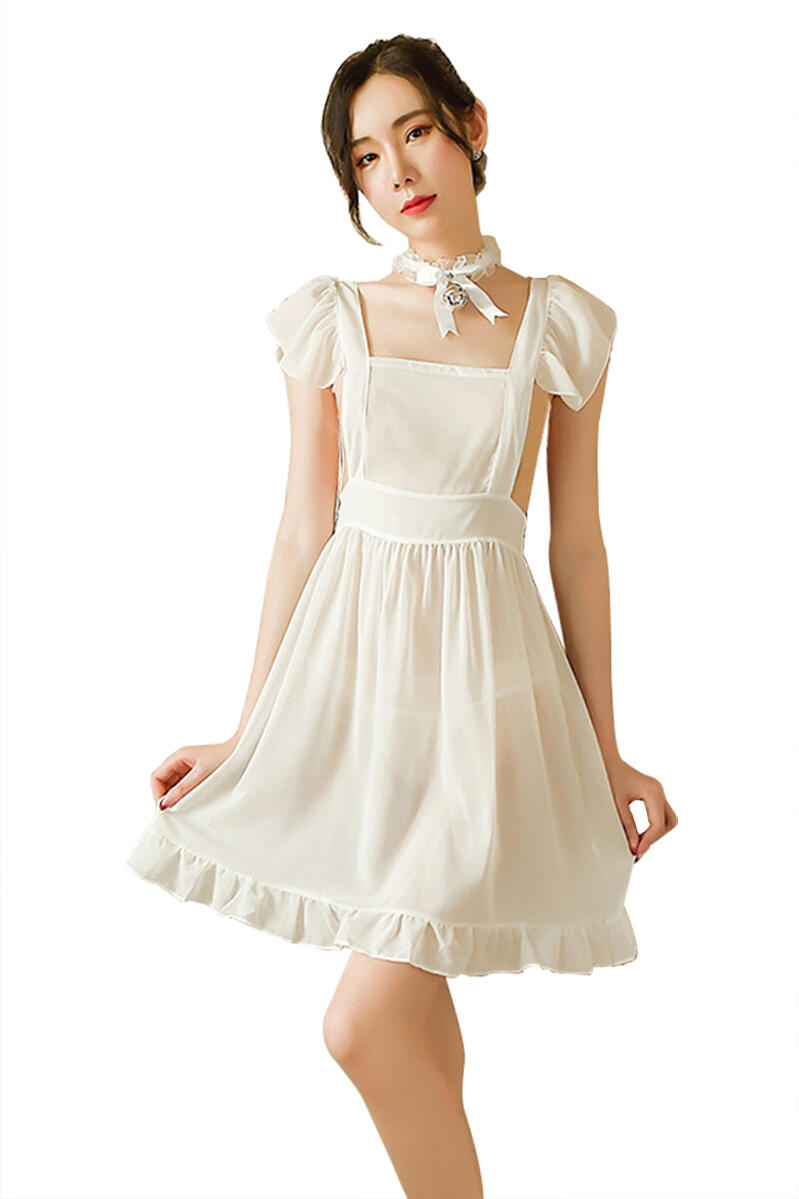 【2色/2】あす楽 鈴付き エプロン メイド服 ワンピース シースルー コスプレ衣装 コスチューム セクシー ランジェリー レディース