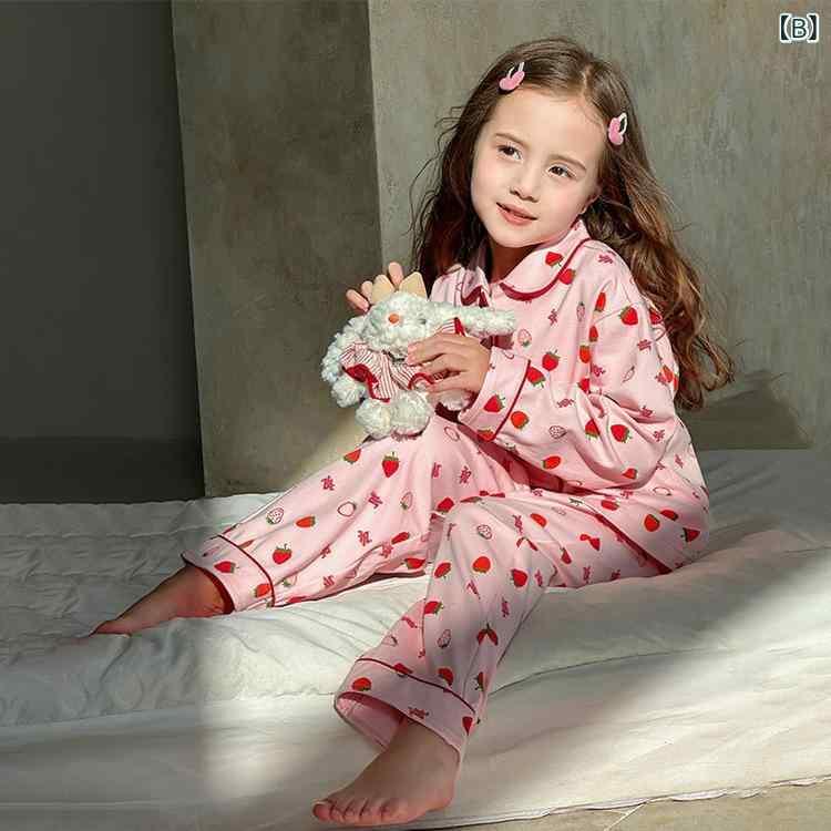 子供用ルームウェア 女の子 かわいいプリント柄 コットン 上下セット 春秋 薄手 長袖 トップス パンツ 部屋着 パジャマ 100 110 120 130 140