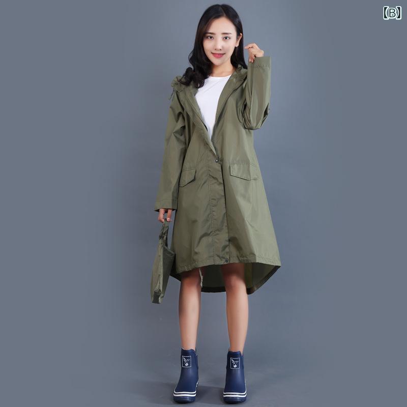 レインコート レディース 大人用 ロング丈 韓国 ファッション 防水 防風 マウンテンパーカー風 レインポンチョ 軽量 撥水 抹茶 カーキ ネイビー ブルー ピンク ブラック アウトドア 通勤 通学