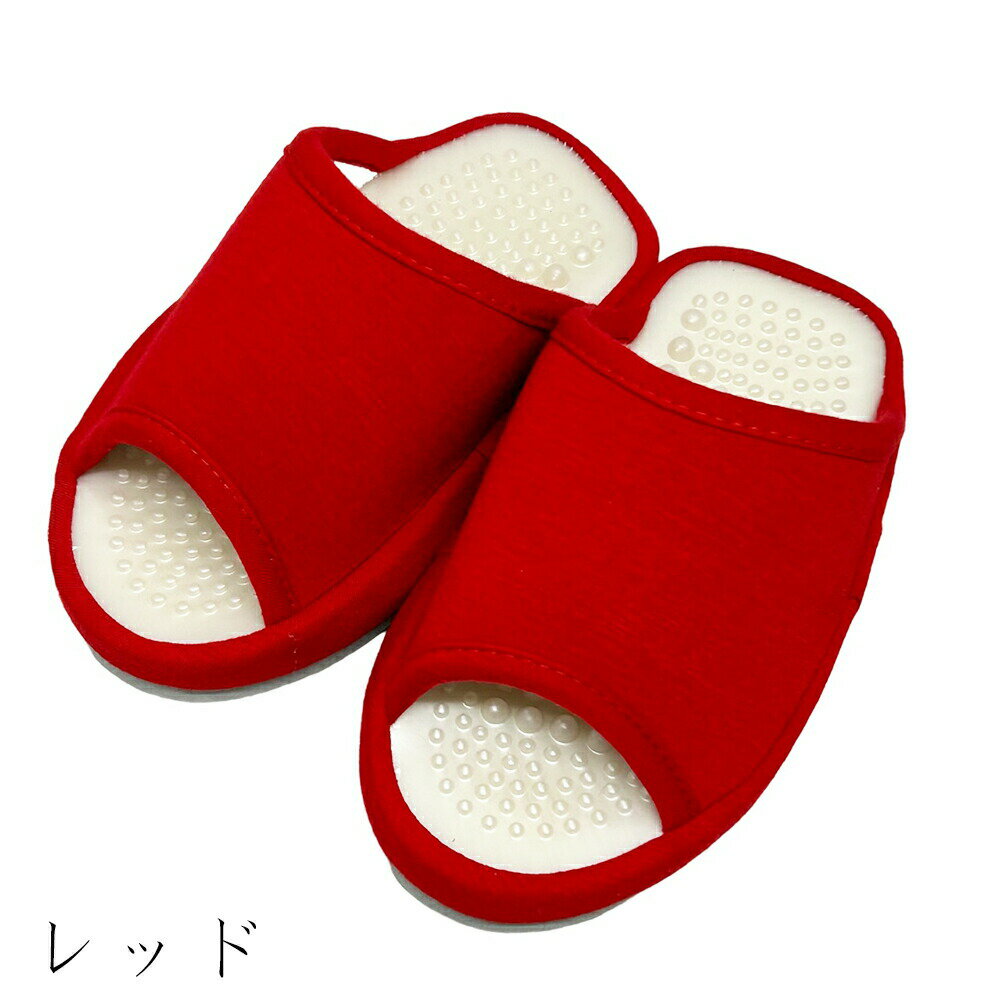 むくみ防止に毎日3時間!気持ちよ〜くシェイプアップを目指せる、かかとのないダイエットスリッパ! つま先立ちで歩くことにより、お尻から足元にかけての筋肉が刺激され、しっかり続ければ引き締め効果が 期待できます。 インソールはイボイボ式のヘルスタイプ。足裏に触れる部分により、つぶつぶの大きさが異なっています。 特に刺激の欲しい土ふまず部分は大きめのツブになっていて、足つぼをしっかり刺激します。 靴を履かないお部屋では、ついついベタベタと歩いてしまいがち。間違った歩行で足裏に体重がかかると、 血管が押されて血流が悪くなります。崩れがちな土ふまずのアーチをしっかり刺激し、血行をよくすることで むくみや冷えを防ぐことに! 初めてお使いの場合、バランスが取りづらいこともあるので、少しづつ履いて、徐々に慣らして頂くことをお勧め 致します。効果が得られるためには継続が何よりも大事です! ボディはTシャツ地のようなソフトなニット生地のシンプル無地と、同じくニット生地にカジュアルな細いボーダー柄をプリントしたデザインの2タイプ。 ソール(底面)はEVA。固めの発泡スチロールのような感触です。 外履きにも使われることのある素材なので丈夫です。水を弾く性質もあります。 レッド・ブルー・グレー・ボーダーレッド・ボーダーブルー・ボーダーグレー・ボーダーブラックの8色展開で 24cm程度までの方に合うワンサイズです。 【SPEC】 製造国中国 サイズ〜24cm程度まで(外寸縦:約18cm) 素材表地:コットン 裏地:パイル地(タオル生地) 中敷:合成樹脂 底材:EVA カラーレッド・ブルー・グレー・ボーダーレッド・ボーダーブルー・ボーダーグレー・ボーダーブラックつま先立ち 美脚 美尻 ストレッチ スリッパ レディース ダイエットスリッパ エクササイズ 健康スリッパ 履くだけ ミニスリッパ おしゃれ 大人気 ダイエットスリッパ ニットボーダー ヘルスタイプ レッド ブルー グレー ブラック 女性用 【凹凸足ツボ式!かかとなしシェイプアップスリッパ】 5