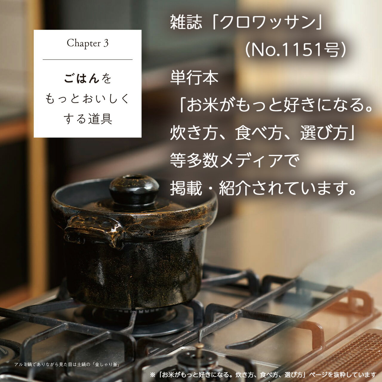 砺波商店 金しゃり釜 1合~3合炊き ガスコンロ自動炊飯モード対応のアルミ製炊飯釜