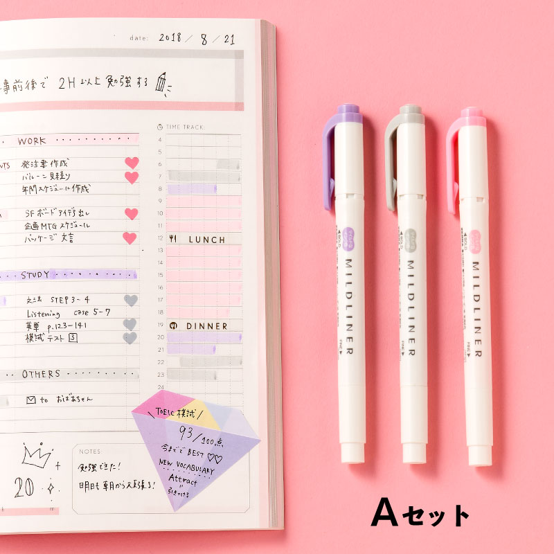 【11/25★RカードでP5倍】マイルドライナー スタプラ部おすすめ3本セット スタディプランナー studyplanner 蛍光ペン マーカー andstudium(wkt7)