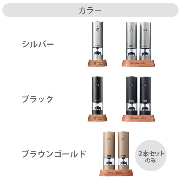【豪華特典付き】ラッセルホブス 充電式ミル ソルト&ペッパー ミニ (単品・2本セット) 7941JP・7941JP-BK・7942JP・7942JP-BK・7942JP-BG Russell Hobbs【電動ペッパーミル 電動ソルトミル USB充電式 セラミック刃 レビューキャンペーン】