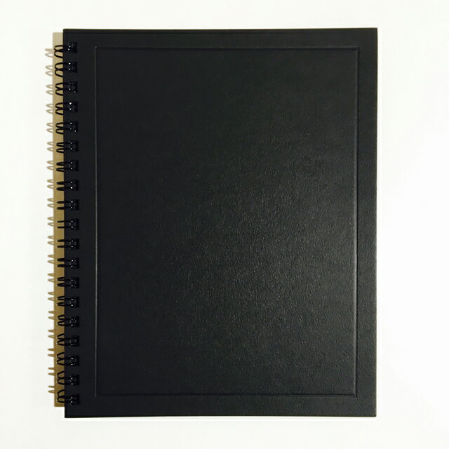 カラスのように真っ黒なスケッチブック『 corvo (コルボ) 』を作りました。色鉛筆やマーカーだけでなく、不透明の絵具でも描画できます。ホワイトのペン はもちろん、メタリックカラーやラメインクの画材で描くと、キラキラ輝いてとってもステキな仕上がりになります。また、枠線だけを刻印したシンプルな表紙もこだわりのポイントです。イラストを描いたり写真を貼るだけで、まるで額に入ったような雰囲気を楽しめます。紙がしっかり分厚いので、アルバムやコラージュ作品用のブックとしてもオススメです。 表紙寸法:153mm×190mm/ 中紙寸法:148mm×185mm 特厚口黒画用紙 15枚 ツインリング綴じ。 ※数量限定のため、お一人様3個までの販売とさせていただきます。※大変申し訳ございませんが、品切れの場合の次回入荷は未定となっております。また、ご予約等はお受け致しておりませんのでご了承お願い申し上げます。