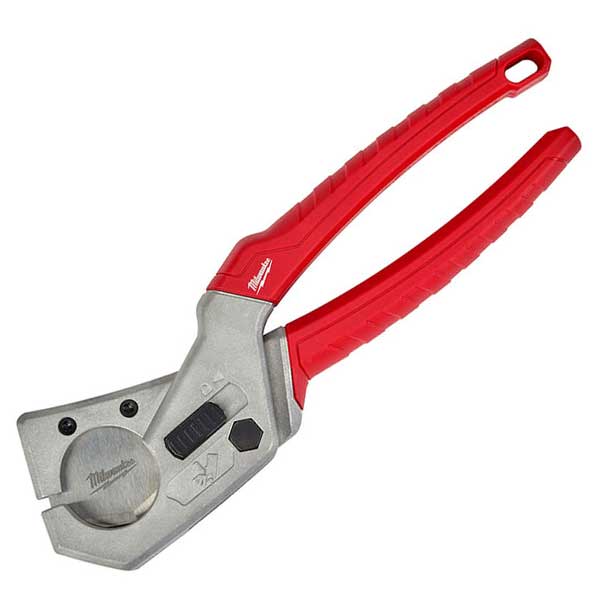 正確に垂直にチューブを切断 ミルウォーキー社のチューブカッターは、最大1インチ(2.54cm)のゴムやプラスチックのチューブ、PEX-aチューブ(高密度ポリエチレンから作られる柔軟なプラスチックチューブの一種)などを切ることができます。交換可能なV字型の両面研磨された鋼製ブレードが垂直にチューブを切断します。片手で操作できるロック機構は、ツールの安全性を向上させるために設計されています。多くのプロのユーザーに支持されるチューブカッターツールです。
