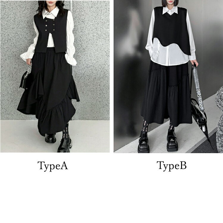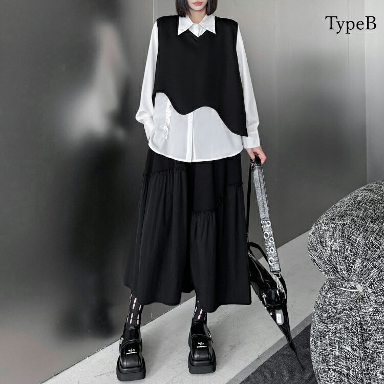ベスト×シャツ×スカートコーデ3点SET セットアップ レディース ロング シャツ ベスト スカート 3点セット スカートドレス スカートスーツ デザインスカート モード系 変形 個性的 上品 フォーマル 結婚式 パーティー 春 秋 冬 とらみ 送料無料