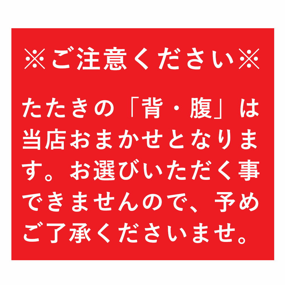水揚げされた新鮮なかつおを焼きあげた、かつおのタタキです。 藁焼きは、藁のみで焼く土佐職人の伝統製法!お口に入れた瞬間に藁の香が広がります。 ゆずポン酢をお付けしてお届けします。 ※ご注意ください 背節・腹節は当店お任せですのでお選びいただくことはできません。 ●商品名 鰹たたき(ゆずぽん酢付き) ●産地 鹿児島県産他 (入荷状況により、産地が異なります。産地は商品に記載となります。) ●内容量 藁焼き(計約800g前後) ●販売者 堅田漁業組合 ●賞味期限 -15℃以下の冷凍庫で約1か月 ●保存方法 -15℃以下の冷凍保存 【冷凍便にて発送】 ※冷凍便のみ ※他の冷凍商品と梱包可能な場合は1梱包にてお送りいたします。 他の温度区分(常温・冷蔵)の商品につきましては、別梱包になりますので別途送料をいただきます。 ■ご購入金額に応じた送料の割引につきましては、自動計算されなくなっております。当店にてご注文確認後に訂正してご案内させていただきます。