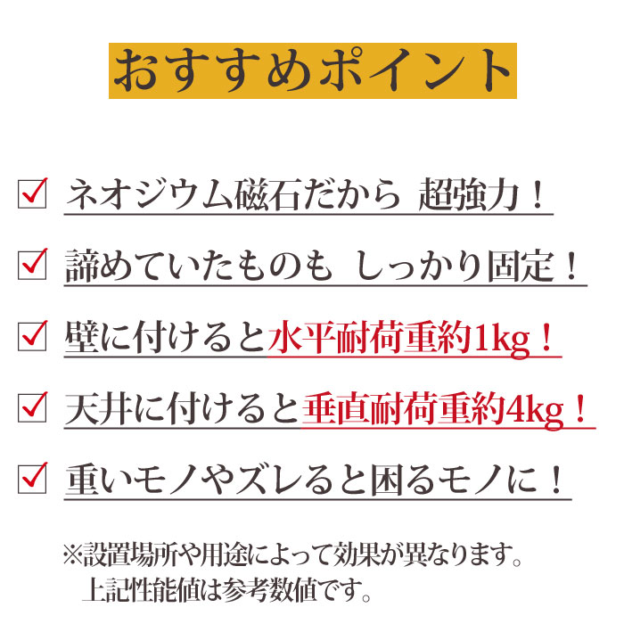 よく一緒に購入されている商品クーポン&ポイント増量中 吊り下げ 収納 マグ4,500円~両面テープ はがせる 超強力 交換 貼付用 別1,400円~クーポン&ポイント増量中 吊り下げ 収納 磁石4,980円トスレ 吊り下げ収納 マグネポート 磁石がくっ5,400円トスレ 北海道稚内産珪藻土 コースター スクエ1,700円~ ーーーーーーーーーーーーーーーー ■マグネストロングフックMH 仕様 ーーーーーーーーーーーーーーーー ・サイズ:約40×80×38mm ・材質:ステンレス、ネオジウム磁石 ・耐荷重量:約1kg <特徴> ※重量物もかけられる強力な磁力の吸着盤を有するステンレス製のフックです。磁性の壁面やトスレのマグネポートと組み合わせてご使用ください。 ※耐荷重量はマグネポートに取り付けた際の参考数値です。※マグネポート以外に取り付けた場合や条件・表面状態等によって数値は変わる事があります。 ーーーーーー ■セット内容 ーーーーーー ・マグネストロングフックMH:2個 ・説明書(マグネポート関連商品 使用例):1枚 *マグネポート本体(磁性プレート)と写真内で紹介しているその他のフック類は別売りです。 ※耐荷重量約1kgは、マグネポート(プレート本体/別売)と併用した場合の数値です。実際に磁石を取り付ける対象物(素材や対象物、使用法)によって、磁力の強弱があることをご了承願います。 セット内容以外は付属しませんのでご注意ください。 自由自在に消毒セットなどを吊り下げできるから、設置も撤去も簡単で便利で安心! お買い得・目玉商品 色々あります!!早い者勝ち!!見逃し厳禁!特設SALE会場はこちらへ! 類似商品はこちらトスレ 吊り下げ収納 マグネポート 磁石がくっ5,400円クーポン&ポイント増量中 吊り下げ 収納 磁石4,980円クーポン&ポイント増量中 磁石がくっつく プレ5,600円~クーポン&ポイント増量中 吊り下げ 収納 マグ4,500円~両面テープ はがせる 超強力 交換 貼付用 別1,400円~クーポン&ポイント増量 ボトル フック 選べる1,390円~トスレ 滑り止めシート プロ仕様 一年保証 1,600円クーポン&ポイント増量 マグネットシート 磁石1,300円~トスレ 珪藻土 水切り マット ミニ トレイ 2,800円~磁石がくっつく パンチングボード ステンレス 12,000円~新着商品はこちら2025/10/25スマホ ショルダー ポーチ カラビナ フック 3,700円2025/10/17虫除け 帽子 ネット付き ハット 作業着 作業1,500円2025/8/10ショルダーバッグ ハンドバッグ 本革 レディー5,980円2025/7/6強力 折りたたみ 傘 晴雨兼用 ビッグサイズ 2,200円2025/6/15長財布 本革 ギャルソン レディース 大容量 2,980円2025/11/22 更新
