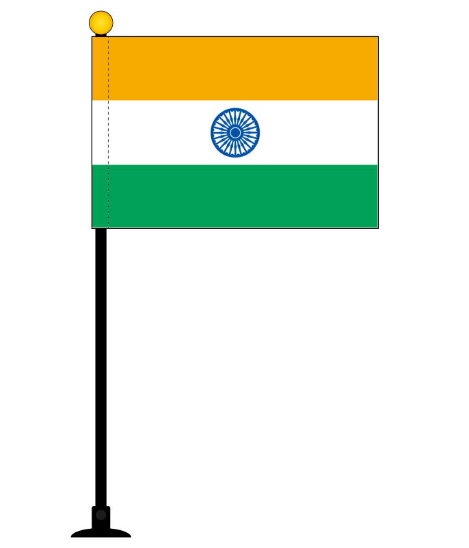 TOSPA インド 国旗 ミニフラッグ 旗サイズ10.5×15.7cm テトロンスエード製 ポール27cm 吸盤のセット 日本製 世界の国旗シリーズ