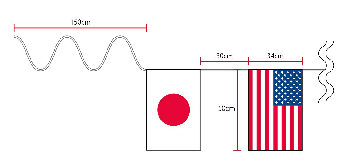 新登場!!テトロン製万国旗 運動会や各種イベントに定番のレギュラーサイズの万国連続旗です。 世界の国旗20カ国の連続で全長約15mです。 雨に濡れても乾きの早いテトロン生地です。 シワになりにくい素材です。 軽量で風によくなびきます。繊維に強度あります。 保管時の虫害も少ないです。 四方をミシンで縫製して強度アップしています。 [基本仕様] ●旗サイズ:34×50cm ●材質:テトロントロピカル ●ロープ:長さ15mの丈夫なナイロンロープに縫い付けしてあります ●縫製:四方をミシンで補強縫製してあります。 ●セット国: ・日本・アメリカ・イギリス・イタリア・インド ・オーストラリア・カナダ・スイス・スェーデン・タイ ・韓国・台湾・中国・デンマーク・ドイツ ・フィリッピン・ブラジル・フランス・マレーシア・ロシアの20カ国連続 ■大きさイメージ(チョット大きめで屋外使用に最適サイズ) ■サイズ表 ■四方をミシン縫製補強して強度アップ ■丈夫なナイロンロープに縫い付けしてあります。 ■セットされている20カ国一覧 ■梱包イメージ 運動会・イベントの定番品!TOSPAの運動会用品は品数豊富で低価格!