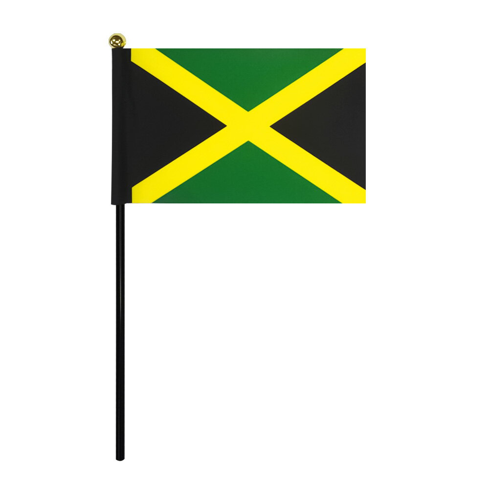 TOSPA ジャマイカ 国旗 ミニフラッグ 1本立てセット 旗サイズ10.5×15.7cm テトロンスエード製 ポール27cm +スタンドセット 日本製 世界の国旗シリーズ