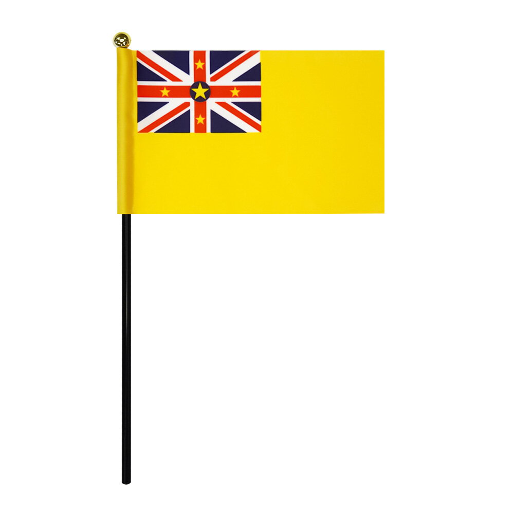 TOSPA ニウエ 国旗 ミニフラッグ 1本立てセット 旗サイズ10.5×15.7cm テトロンスエード製 ポール27cm +スタンドセット 日本製 世界の国旗シリーズ