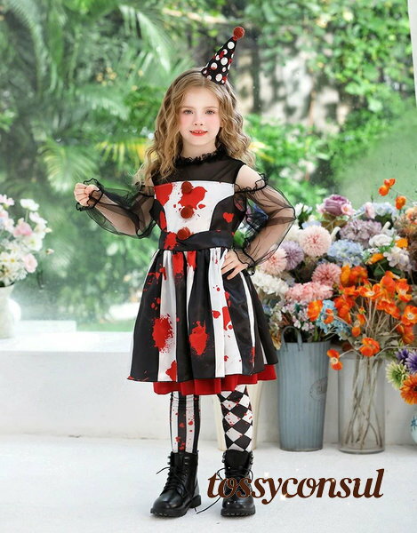 ハロウィン コスプレ 衣装 子供 ピエロ 定番 仮装 ハロウィン キッズ 女の子 サーカス コスプレ衣装 ワンピース コスチューム 4点セット 余興 お遊戯会 小学生 イベント衣装 忘年会 新年会 Hallowee 120 130 140 150 160